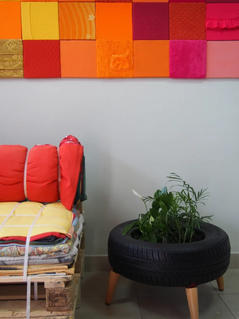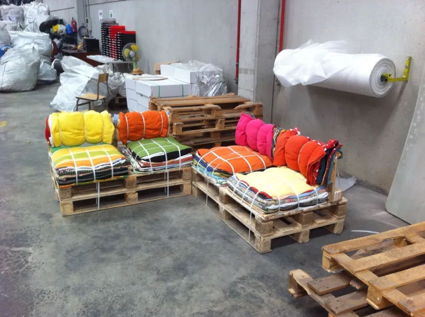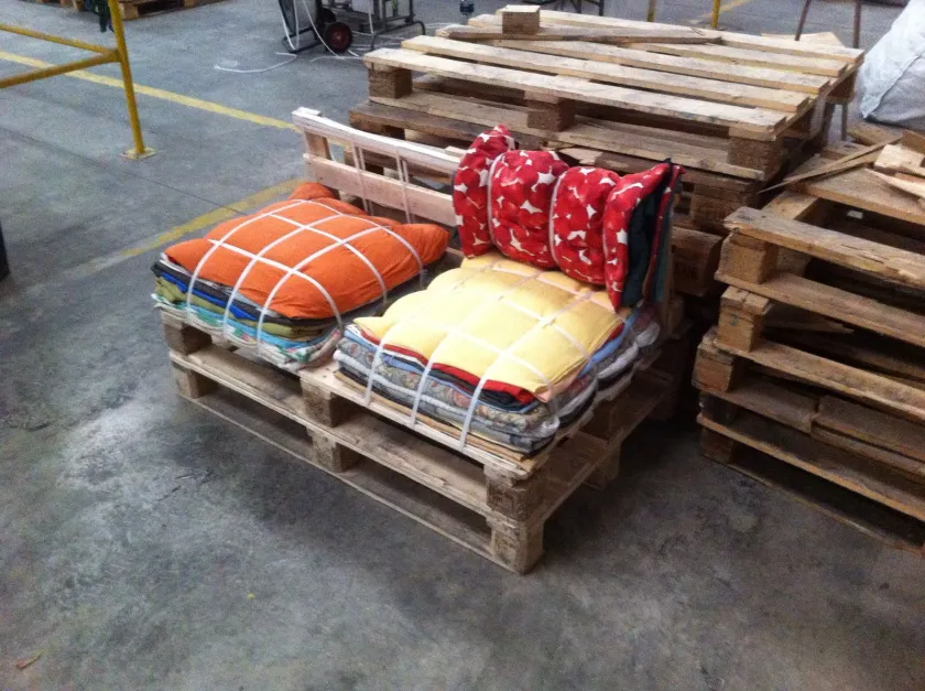 El siguiente paso fue seleccionar y acondicionar los palés, y, de nuevo, luego de una búsqueda de telas y retales para los asientos de los sillones.