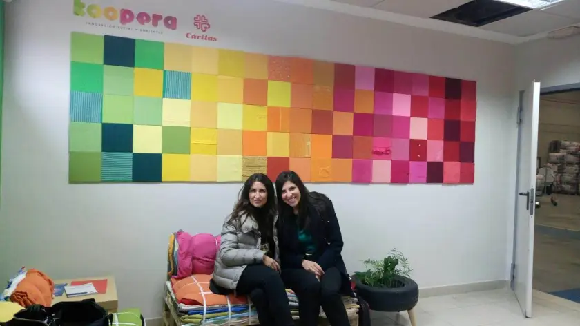 El siguiente paso fue, con la ayuda del equipo de selección de ropa de la planta, Mercedes, Carmen, Cristian y Joy entre otros, que nos ayudaron a seleccionar la ropa que ibamos a emplear para el mosaico.
